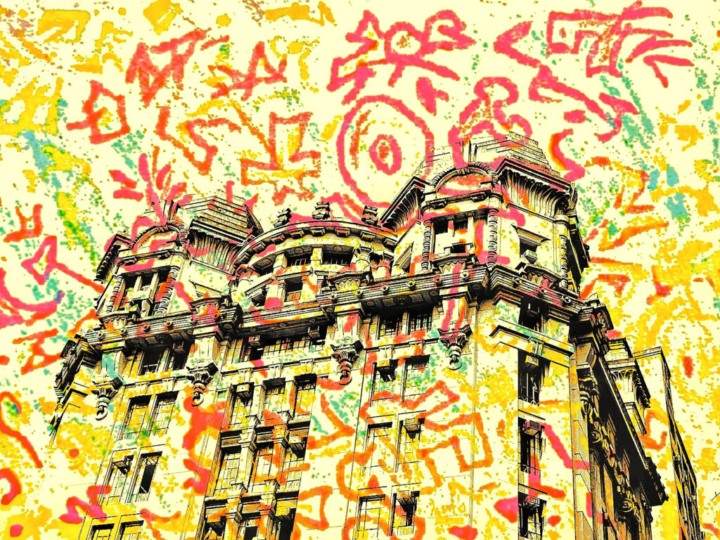 Em suas obras, Enzo Arcad explora um repertório artístico que combina traços abstratos e fotografias urbanas com uma pesquisa voltada sobre tipografia, arte urbana e memória. Inspirado pelas vivências e observações da capital metropolitana, Arcad incorpora elementos visuais marcantes do ambiente urbano, como a Pichação e o Graffiti. Esses registros gráficos, frequentemente estilizados e indecifráveis para o olhar comum, refletem a perpetuação de uma linguagem visual nas ruas. Como observador e artista, conduz o público a uma escrita primordial, originada da imagem, permitindo que cada indivíduo decodifique de forma pessoal. Essa abordagem subjetiva cria uma reflexão sobre a linguagem contemporânea, destacando como imagens evocam significados únicos e coletivos.
