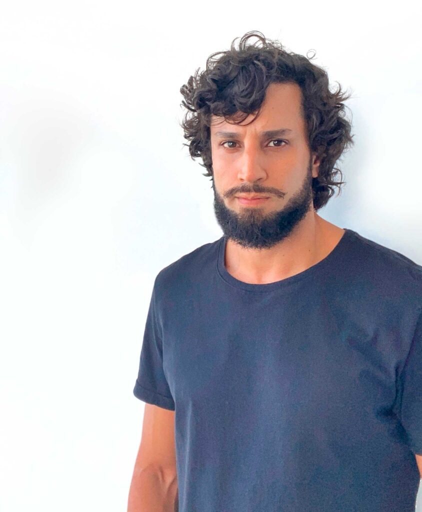 Em suas esculturas, ele utiliza materiais como madeira, sementes, papel, resina e tecido. Tem formação acadêmica em Design de Produto e estudou na Escola de Artes Visuais do Parque Lage sob a orientação dos professores Marcus Bonisson e Franz Manata.