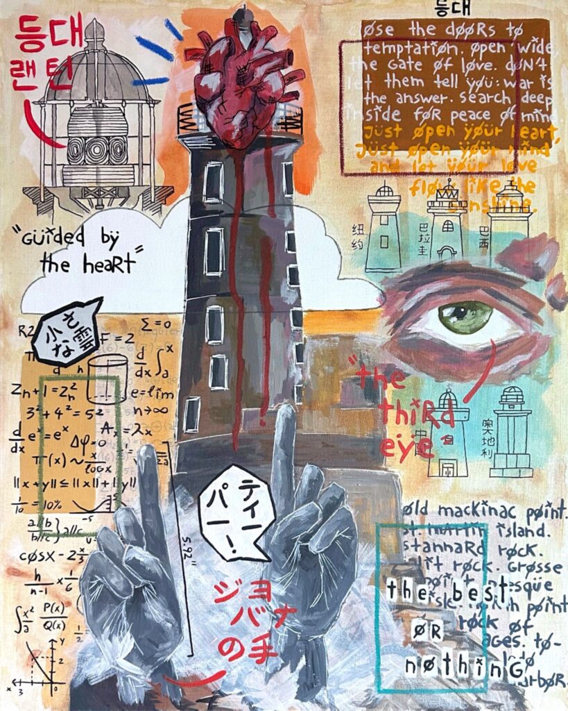 Costumo consumir bastante informação, visual e escrita (além de ouvir muita música, o que acaba me inspirando também). Minhas vivências de vida, meus textos antigos, meus altos e baixos, meus sentimentos mais profundos, o que me rodeia, meus amigos… tudo isso me inspira e faz eu conseguir me expressar materializando em tela.