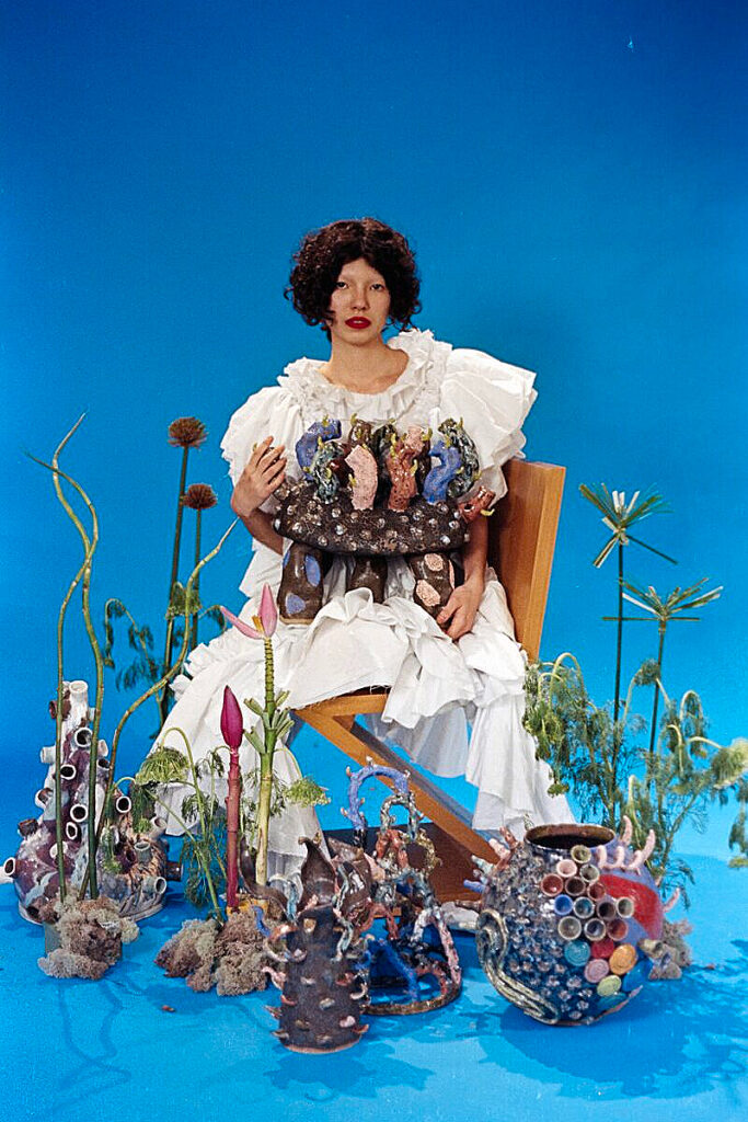 Nipo-brasileira, 23 anos, nascida e residente em São Paulo. Formada em Design de Moda, iniciou sua carreira artística aos 15 anos quando desenvolvia figurinos e performances no Coletivo Metanoia, o que despertou seu interesse em expandir para outras áreas do design. Seu avô, embora não seja ceramista profissional, estudou técnicas cerâmicas em Saitama, no Japão, há 20 anos, em 2019, Yasmin aprendeu com ele os princípios básicos da cerâmica. Nos anos seguintes se profissionalizou com outros ceramistas e em 2023 fundou sua marca "Crisálida" onde busca ressignificar peças ordinárias do cotidiano em objetos extraordinários. Trabalha com torno elétrico, explora diferentes técnicas na pintura em cerâmica, além de produzir esculturas disformes através da modelagem manual. Em sua pesquisa permeiam temas como metamorfose, padrões microscópicos na natureza, animais abissais, flores raras e o mar.